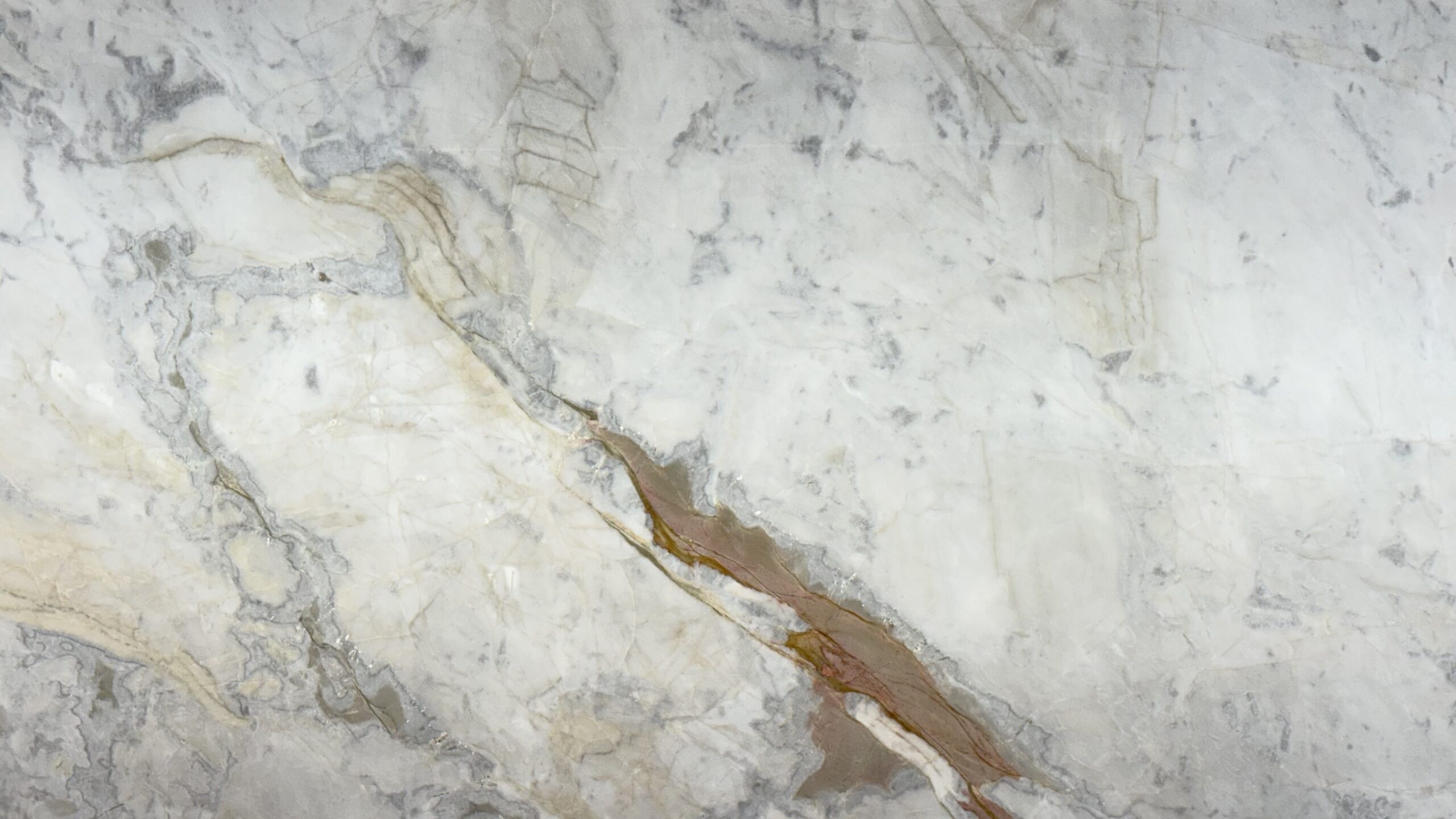 Macchia Oro is not just a surface, it is a centerpiece. Its luminous ivory background is enhanced by fluid gray veining and distinctive golden streaks that flow organically across the slab, creating a sophisticated and artistic movement.
